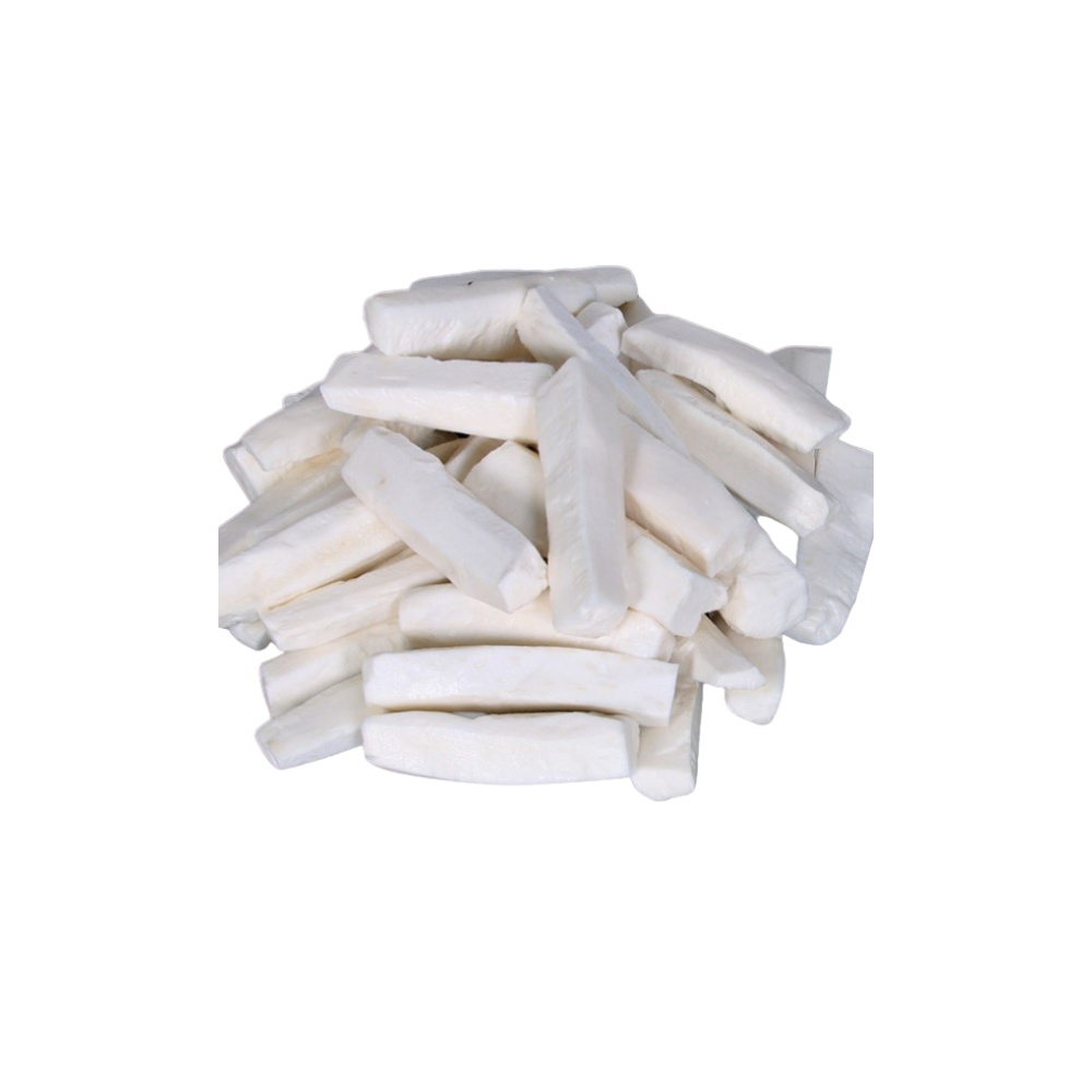 The tapioca is peeled, washed again, and cut into uniform pieces—commonly cubes, long cuts, or custom sizes as requested by the buyer. Once prepared, the pieces are frozen using advanced IQF technology, which freezes each piece individually, preventing clumping and preserving its natural texture and flavor.